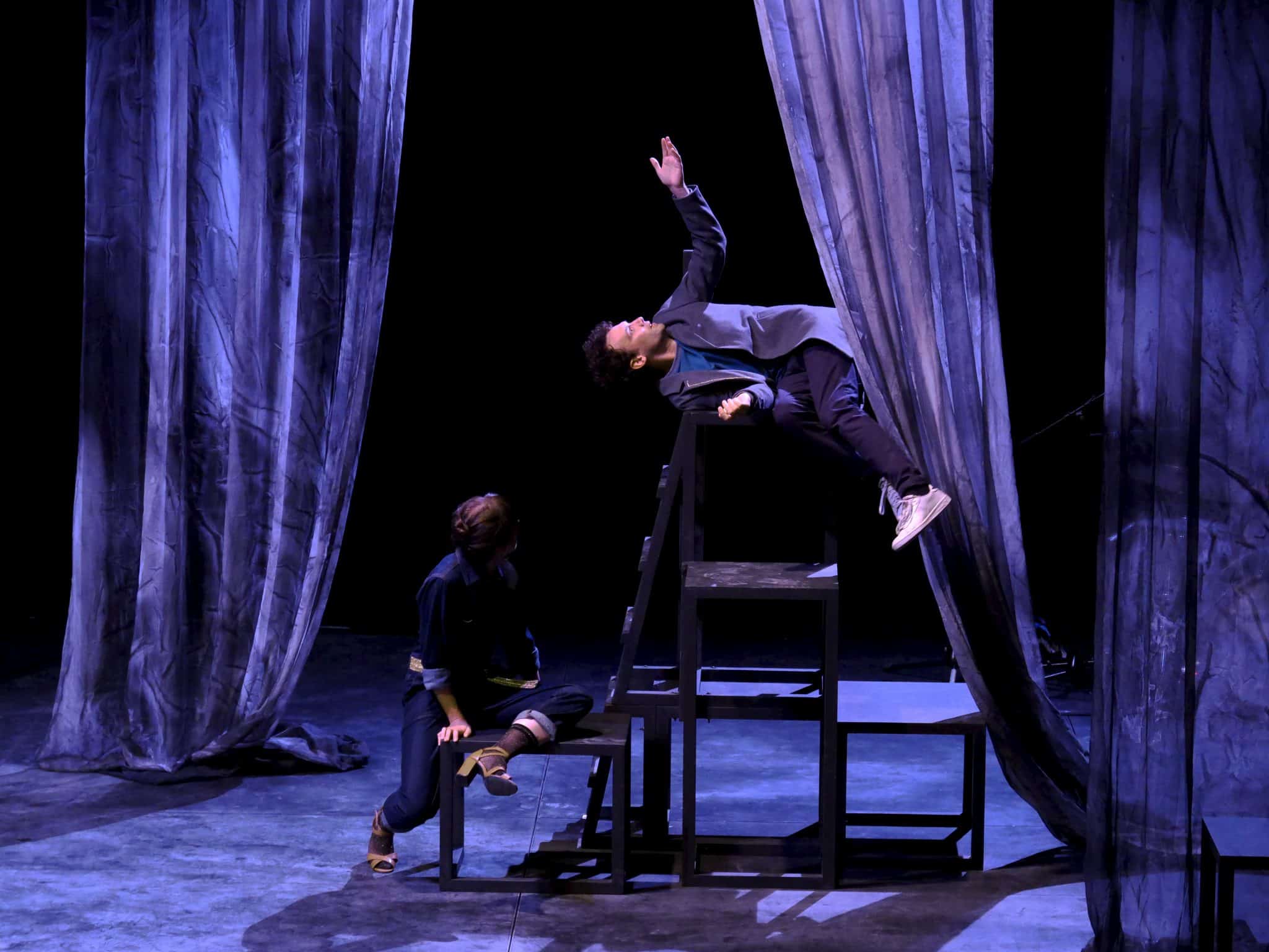 mise en scène Lisa Guez / texte et direction de l’écriture Lisa Guez à partir des improvisations des comédien.ne.s / avec Baptiste Dezerces, Arthur Guillot, Nelly Latour, Isa Mercure, Mathilde Panis, Cyril Viallon / collaboration à la mise en scène et costumes Sarah Doukhan / dramaturgie Charbel Taouk / collaboration à la mise en scène et à la dramaturgie Alexandre Tran / création lumières et régie générale Lila Meynard / création sonore et musique live Louis-Marie Hippolyte / scénographie Philippe Meynard / regard chorégraphique Cyril Viallon / collaboration artistique Clara Normand / diffusion Anne-Sophie Boulan / production Clara Normand / © Clara Normand