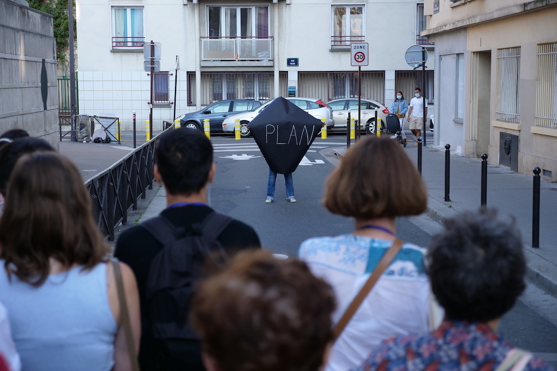 « Un ancien parquet de bal devenu maison d’artistes, posé là, dans un jardin. Un lieu comme un paradoxe. Nécessairement fermé puisque la création exige l’isolement et pourtant en prise avec son environnement et ouvert au quartier. C’est à partir de ce paradoxe apparent que nous avons construit une forme théâtrale déambulatoire. Une forme imaginée à partir de rencontres faites dans le quartier et qui dessine un parcours sensible dans les rues du 18e et 19e arrondissements pour aboutir au Grand Parquet. »